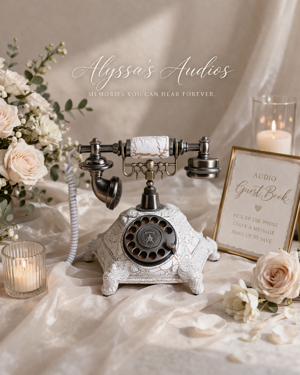 Alyssa’s Audios was created with one simple goal—helping people capture the moments that matter most. As someone who values memories and the stories behind them, Alyssa wanted to offer a unique way for couples and families to preserve not just photos, but the voices, laughter, and emotions of their special day. What started as an idea quickly became a passion: giving people something they can truly revisit and feel all over again.